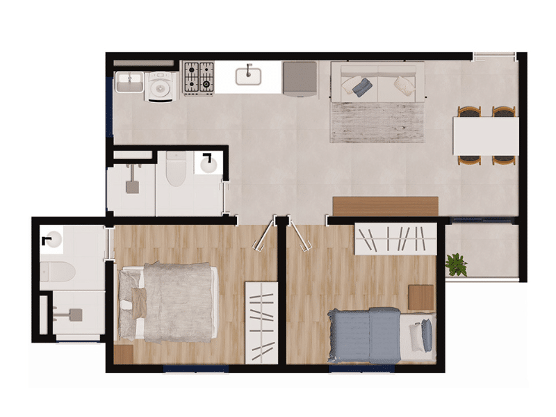 Descubra o conforto e a praticidade de morar em um apartamento 2 dormitórios Jardim de Cresci, um dos bairros mais promissores de São Carlos. Este residencial oferece opções de plantas entre 42 e 47 m², ideais para quem busca funcionalidade sem abrir mão de qualidade. Com opção de unidade com uma suíte, o projeto atende diferentes perfis de moradia, desde casais até pequenas famílias.