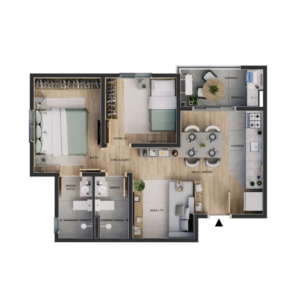 Para quem deseja ainda mais espaço, o empreendimento também conta com unidades térreas que possuem quintal privativo, com metragens que variam de 16 a 25 m². Dessa forma, você pode desfrutar de um espaço ao ar livre exclusivo, ideal para momentos em família, com amigos ou com pets.